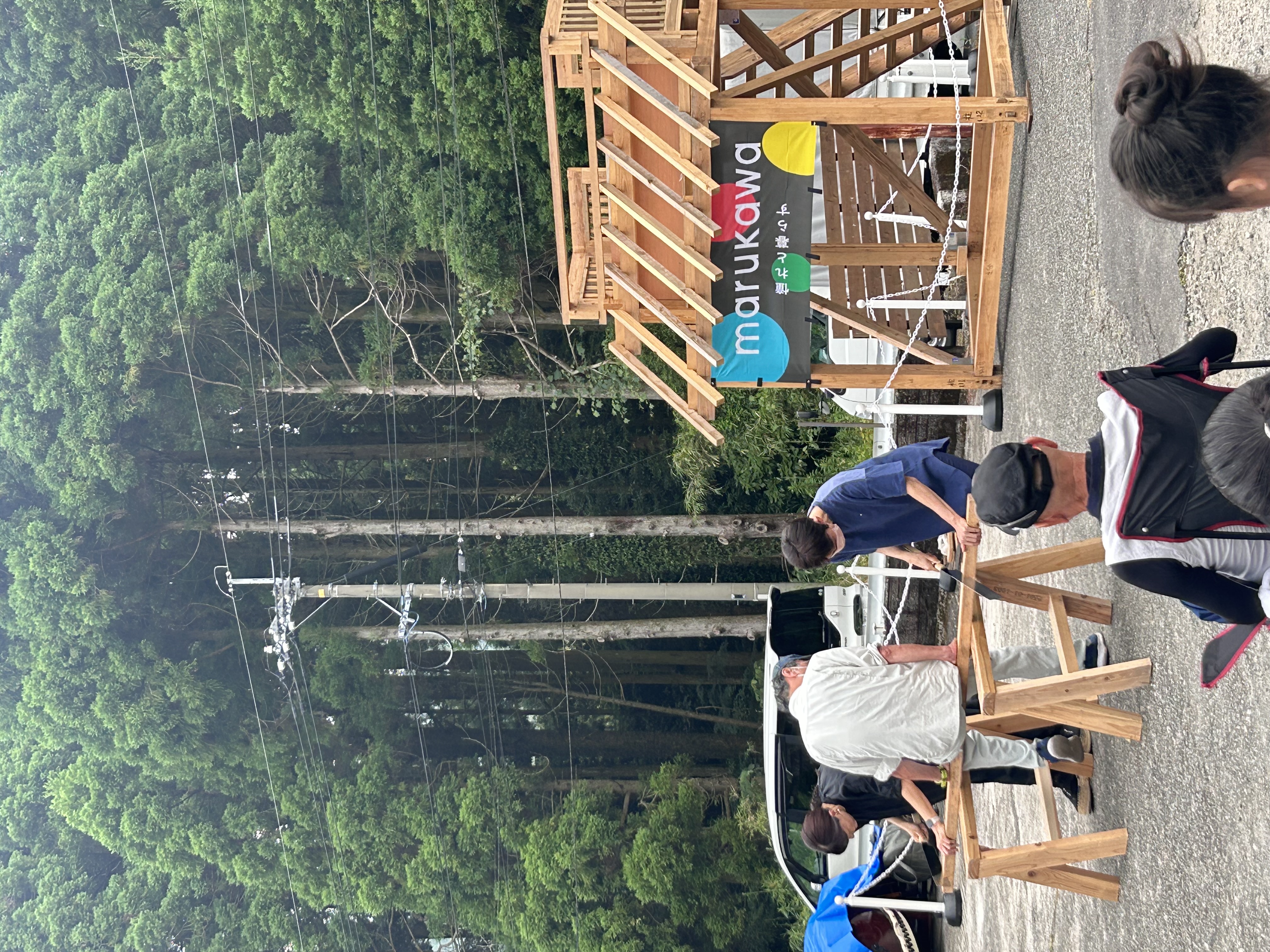 まず目に飛び込んできたのは、木材早切り対決でした。一般の方でノコギリを使うのは初めて という方が多かったのですが皆さんとても早く上手に切れていました!観客の皆さんも盛り上がっておりこのマルシェの活気が伺えました!!